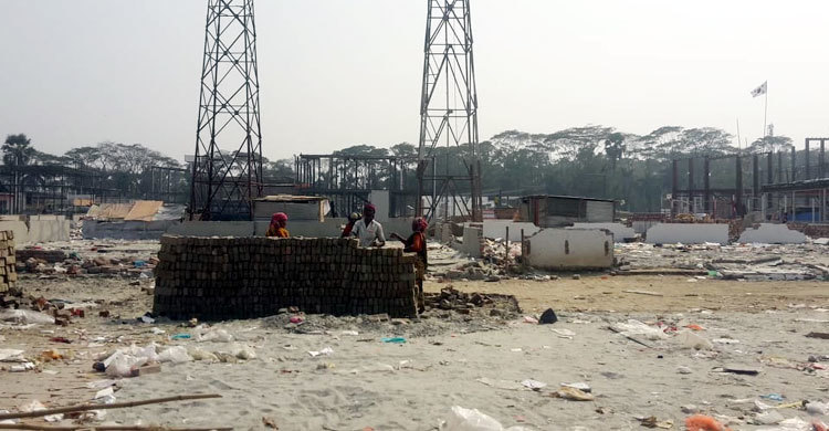 বাণিজ্য মেলা প্রাঙ্গণ এখন ধ্বংসস্তুপ