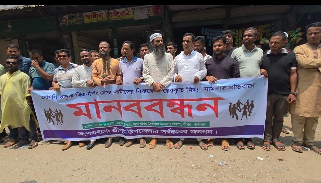 গাজীপুরে বিএনপি নেতাদের নামে এনসিপির মামলার প্রতিবাদে মানববন্ধন