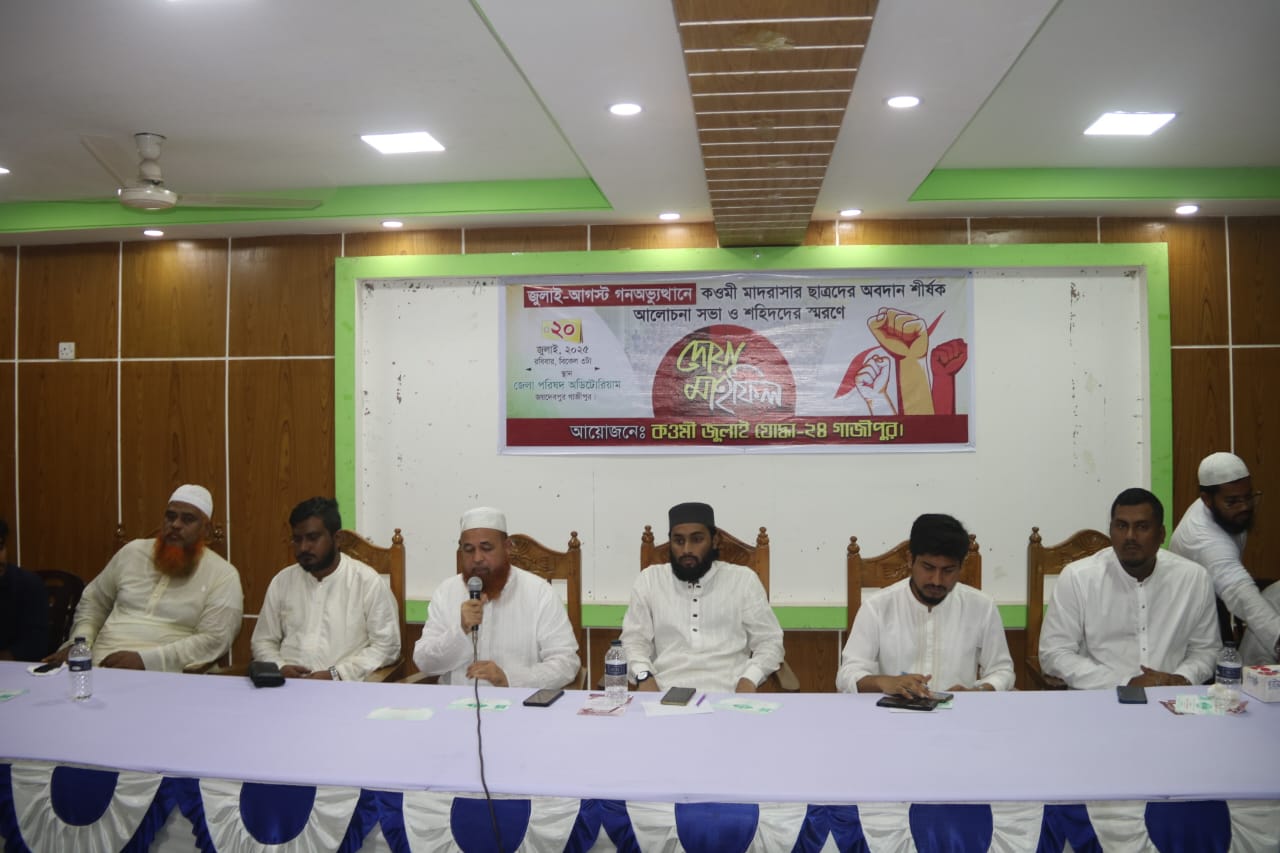 জুলাই-আগস্ট গনঅভ্যুত্থানে কওমী মাদরাসার ছাত্র দের অবদান শীর্ষক আলোচনা সভা ও শহিদ দের স্বরনে দুআ মাহফিল অনুষ্ঠিত হয়।