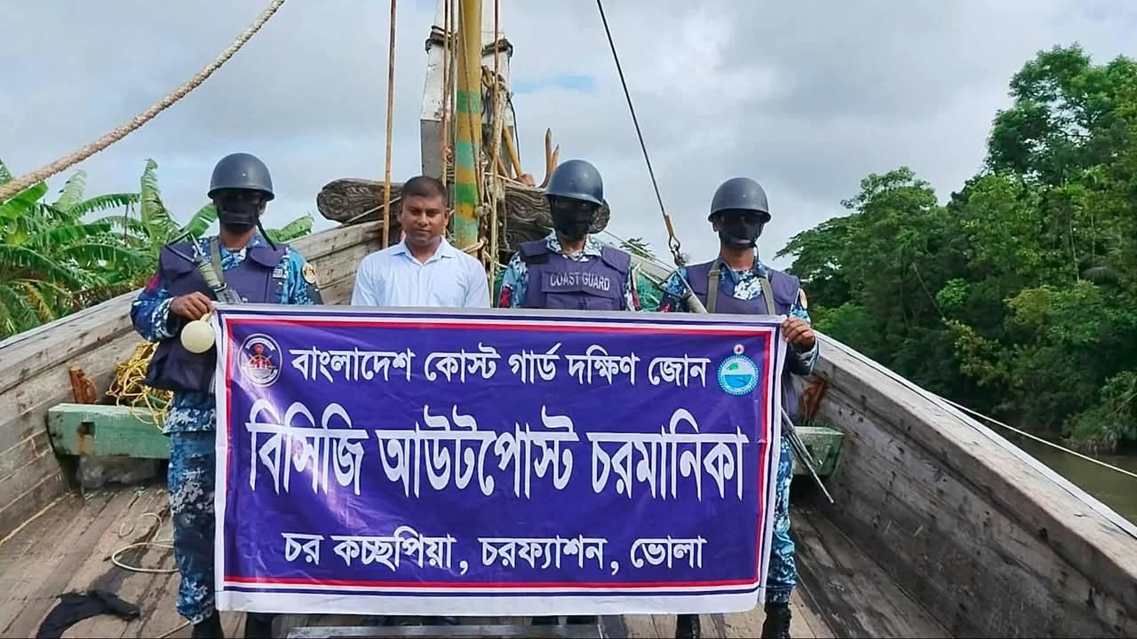 ভোলা ও পটুয়াখালীতে ৩ টি অবৈধ আর্টিসনাল ট্রলিং বোটসহ ৯ জন জেলেকে আটক করেছে কোস্ট গার্ড।