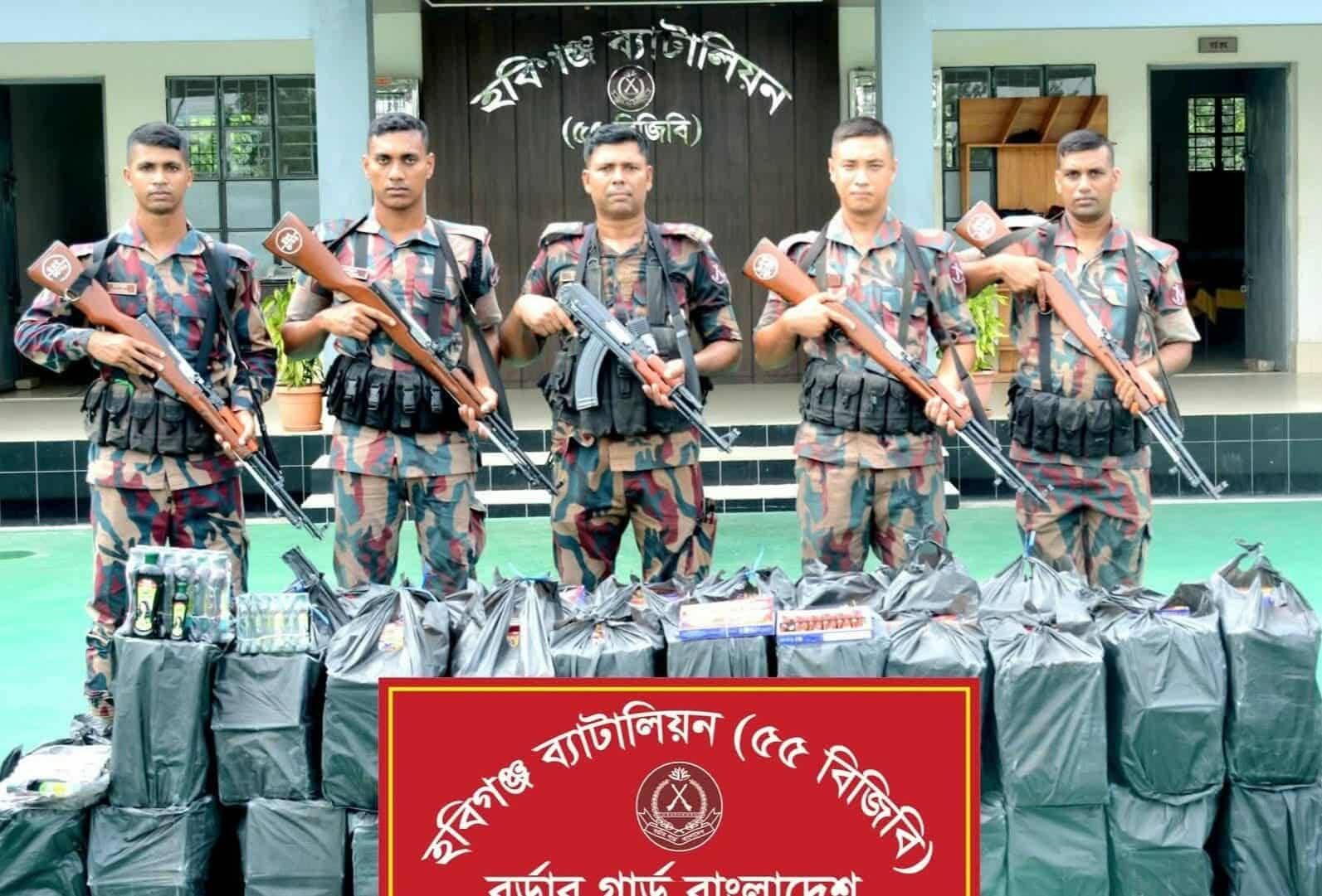 বর্ডার গার্ড বাংলাদেশ (বিজিবি) চোরাচালান ও মাদক পাচাররোধে তাদের কঠোর অভিযান অব্যাহত রেখেছে। তারই ধারাবাহিকতায় হবিগঞ্জ জেলার ৫৫ বিজিবি গত ০৪ দিনে ১০টি পৃথক বিশেষ অভিযান চালিয়েছে। এসব অভিযানে ভারতীয় গাঁজা, বিভিন্ন প্রকার মদ, ভারতীয় দামী শাড়ি, কাবেরী মেহেদী, চকলেট, ফুসকা এবং বাংলাদেশী মশার কয়েল এবং সেগুন কাঠসহ মোট ২৪ লক্ষ ১৫ হাজার ৫০০ টাকা মূল্যের মালামাল জব্দ করা হয়েছে।