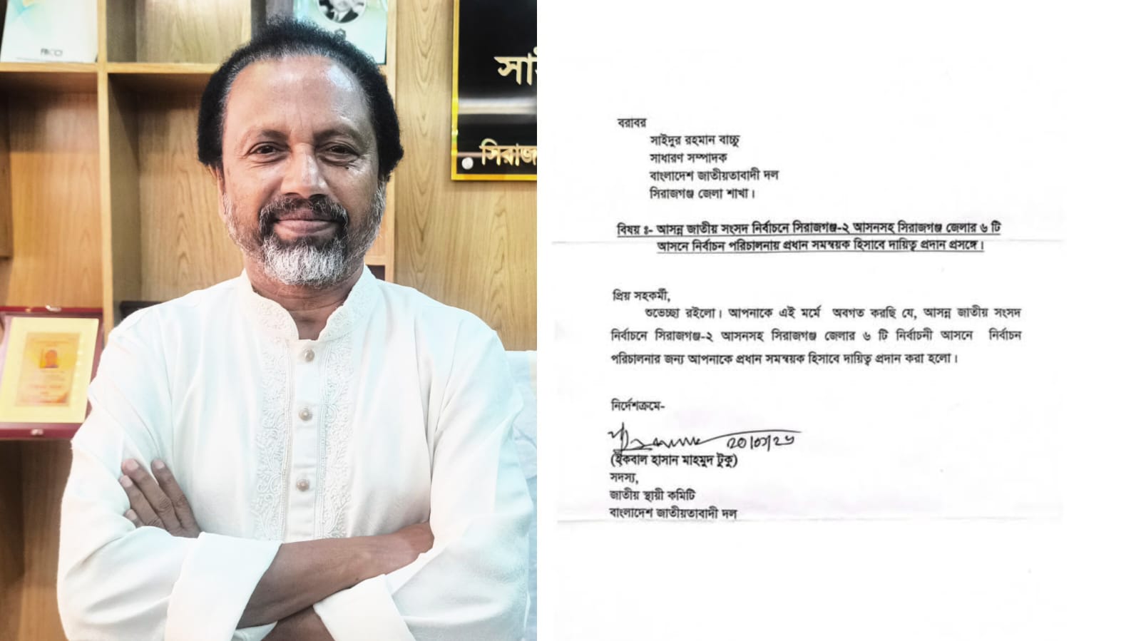 বিএনপির নির্বাচন পরিচালনায় সিরাজগঞ্জে ৬- আসনের দায়িত্ব পেলেন সাইদুর রহমান বাচ্চু।