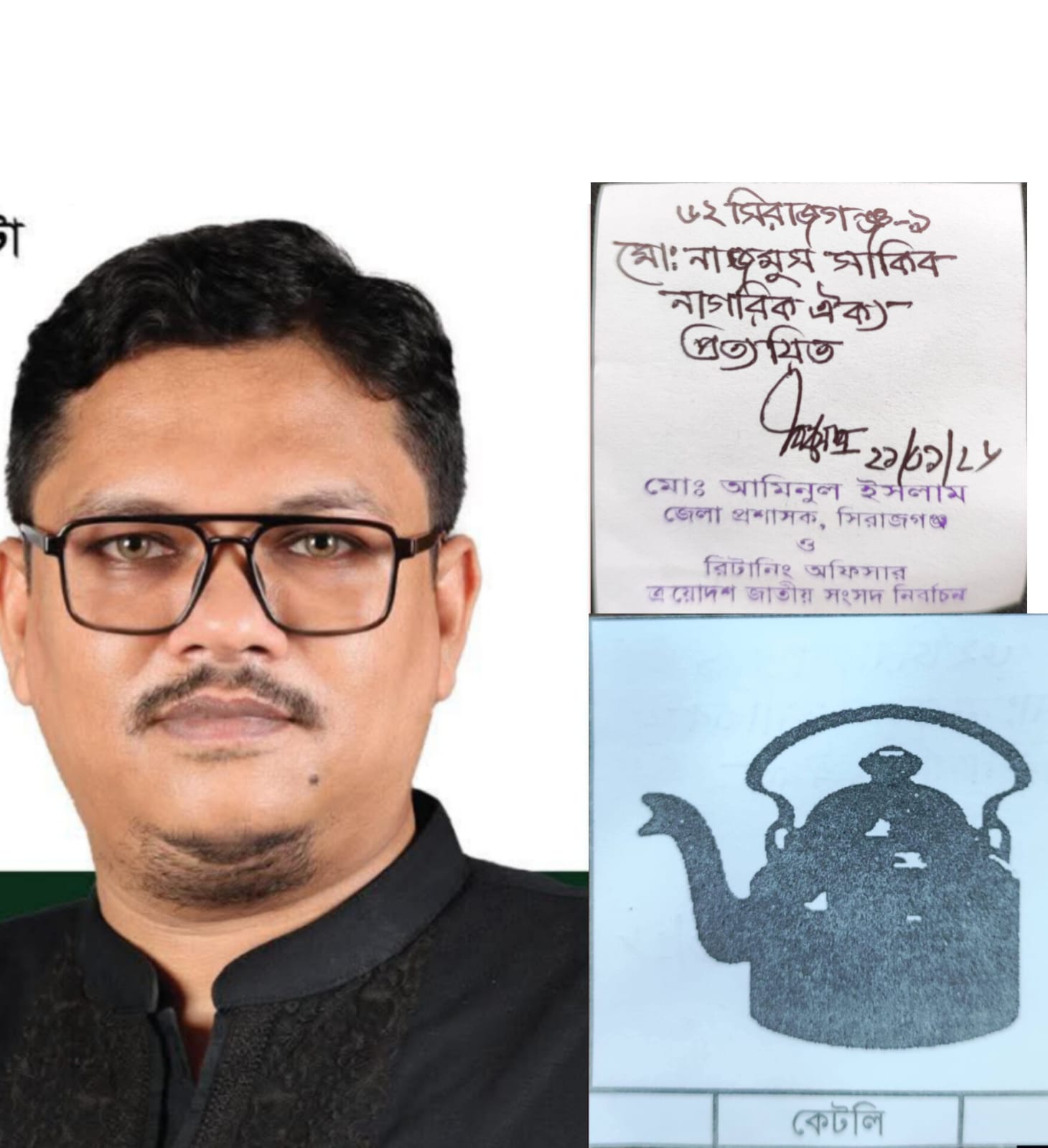 সিরাজগঞ্জ-১ আসনে নাগরিক ঐক্যের প্রার্থী নাজমুস সাকিবকে কেটলি প্রতীক বরাদ্দ